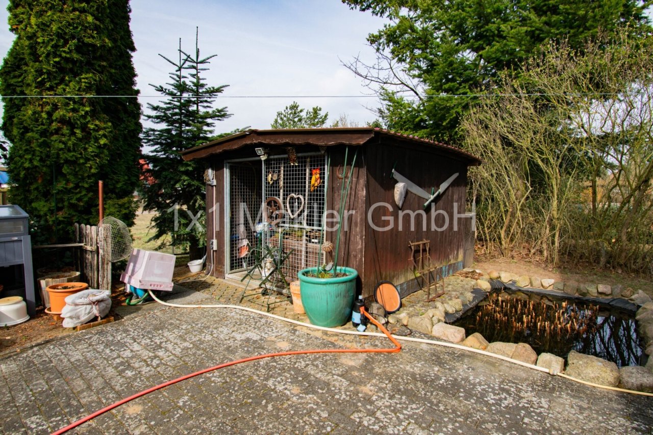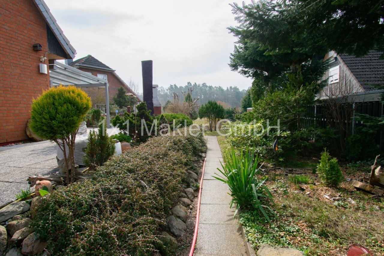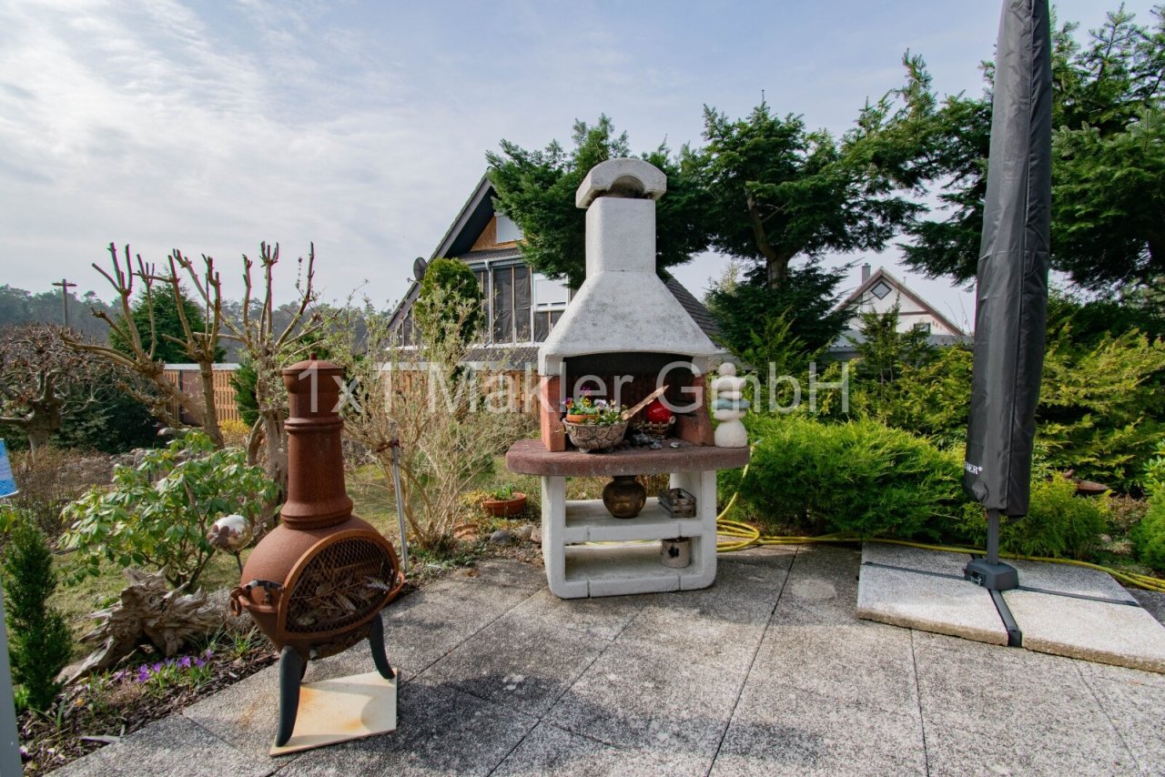 Das ca. 625 m² große Grundstück ist liebevoll angelegt und bietet ausreichend Platz für Gartenliebhaber. Eine überdachte Terrasse mit Markise, ein Gartenhaus sowie weitere Außenbereiche bieten vielfältige Nutzungsmöglichkeiten.